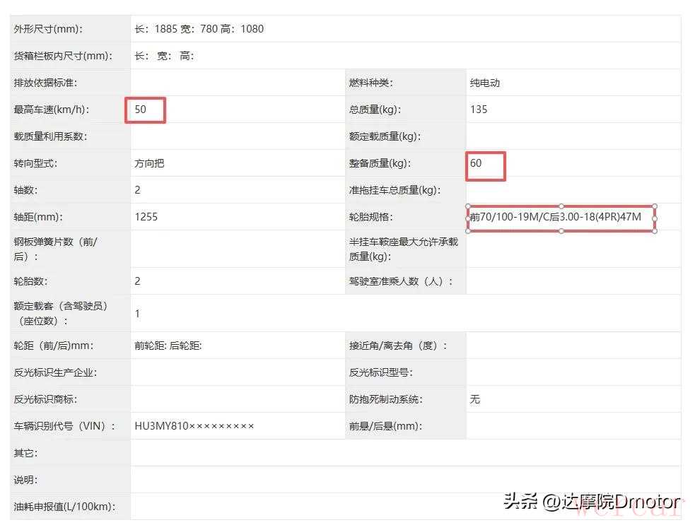 车辆采用前19后18的轮毂搭配,整备质量也仅为60KG,搭载一个1200KW的电机,最高车速可达50KM/H!