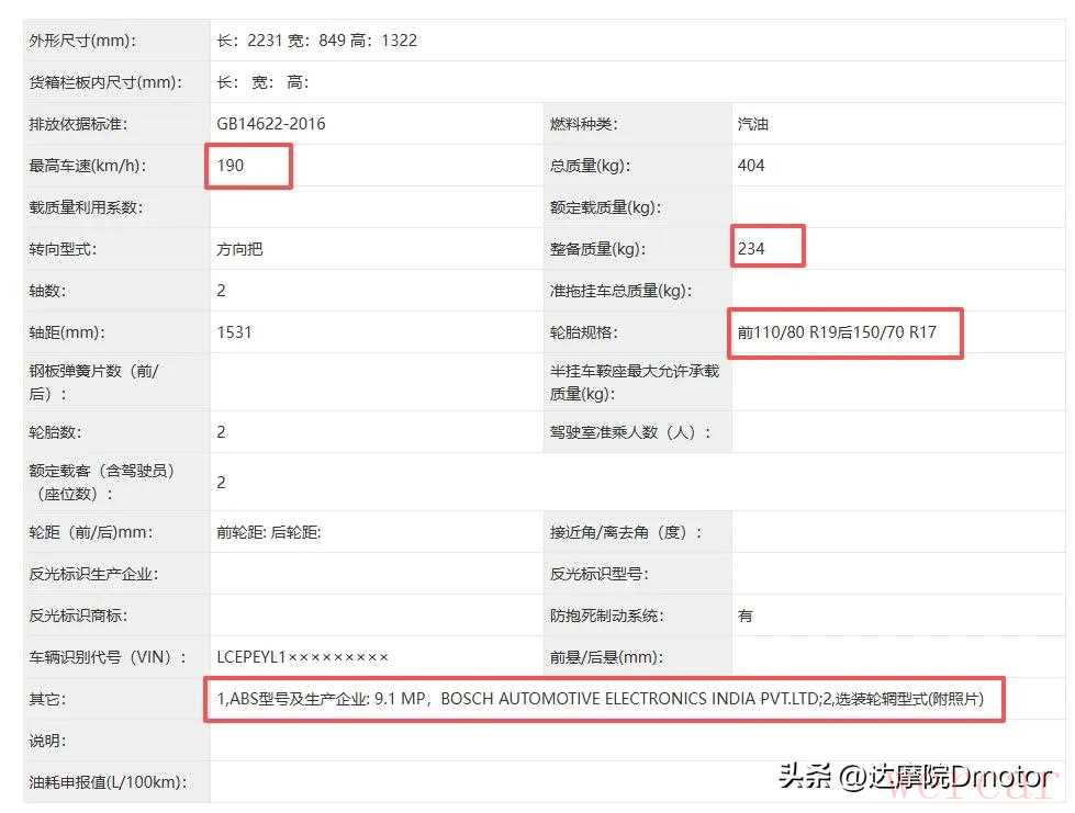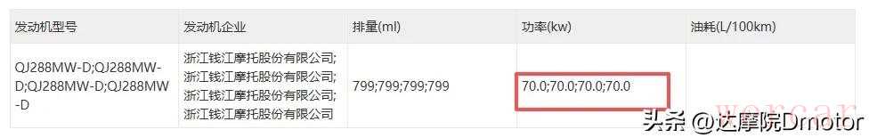 车辆搭载799cc双缸水冷发动机,申报功率为70kW(95匹),与展会公布的规格68KW要大些。