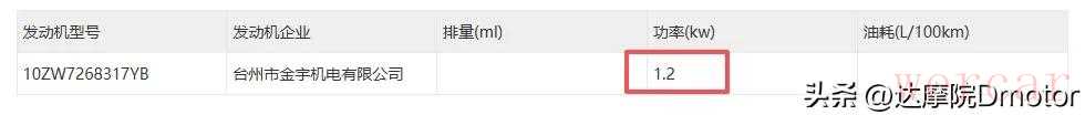 至于车辆动力方面采取了来自台州金宇机电的电机,最大功率为0.8KW!