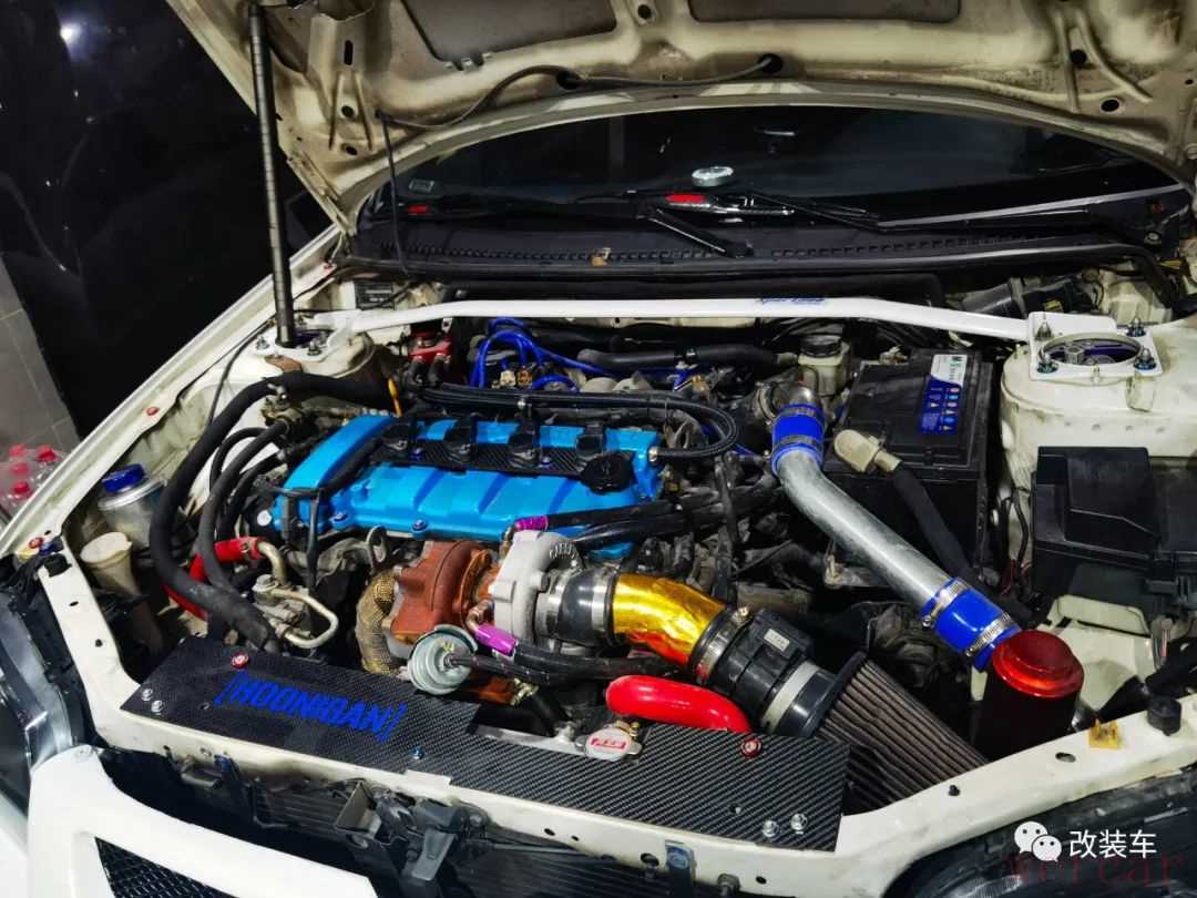 "性能方面,换上了2.0机头+重组+内部更换、加厚缸垫、定制气门室盖、定制独立点火线圈、550CC加大喷油嘴、博士70MM电子节气门、订制涡轮套件、订制涡轮管路、加大中冷器、Tial排压阀+进气泄压阀、Emtron SL4全取代ecu、博士4.9宽频氧传感器,最后还刷入了林老师着车程序+特调程序,让这辆323轮上250匹马力。"