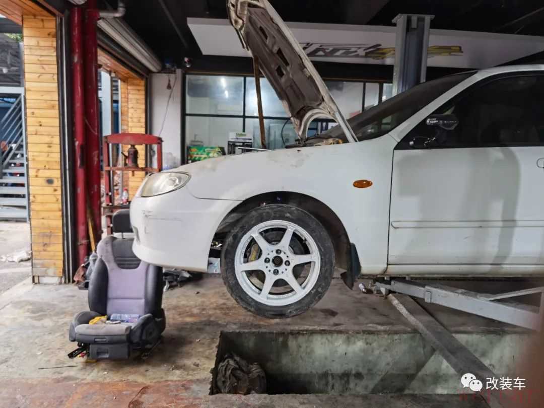 "这辆车是2004年的马自达323,是我在2022年3月份时买的,买这款车是因为很久没玩车了,手有点痒,有兴趣的车要么都玩过了,要么就是玩不起……最后选择这辆323也是跟车本身没多大关系,主要想体验改装的过程。"