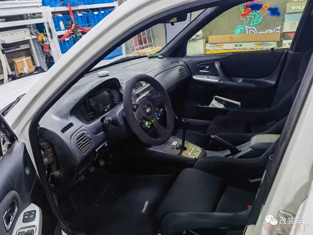 "内饰方面,换上了两张桶椅+Schorh4点式安全带、燃氪CAN多功能方向盘、快排、AIM MXP全取代赛车仪表,毫不马虎的内饰改装结合上出色的性能表现,仿佛是在开着一辆赛车。"