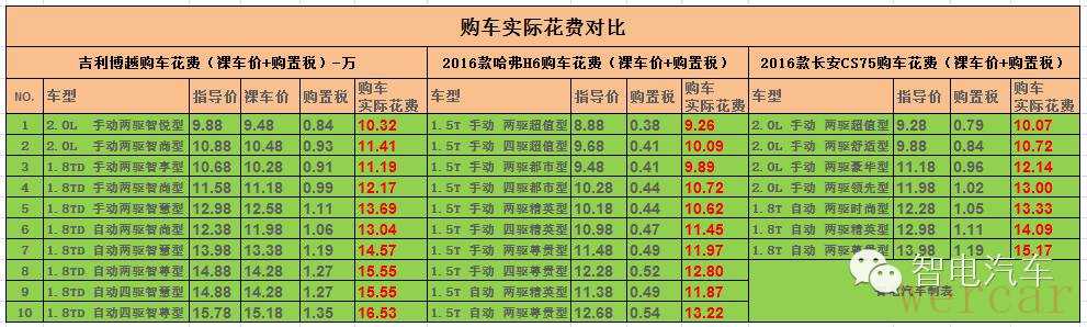 其实博越没优势,博越全系配1.8T和2.0升发动机,购置税没有优惠,同时指导价长安和CS75高,即使有有厂家补贴,但购买博越的实际花费(裸车价+购置税)的价格比长安CS75稍贵(1万以内),