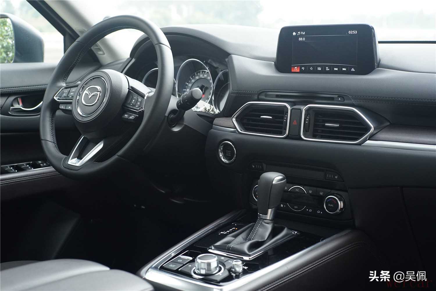 内饰也依然保持了简洁风格,手摸得到和眼睛看得到的都是马自达的风格。中控屏幕集成了MZD CONNECT car play car life的功能,完全达到了主流的智能多媒体体验水平。而且仪表盘前方,还会有ADD抬头显示的功能,会提示后方来车接近,这个功能不得不说让我十分心水。