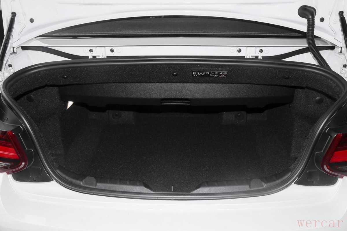 储物方面,车内设置了许多常规的储物格,后排中间位置还设有杯架,放置一些随身携带的杂物问题不大。后备厢由于敞篷的原因,整体空间比较局促,但放下背包和登机箱完全足够。