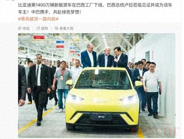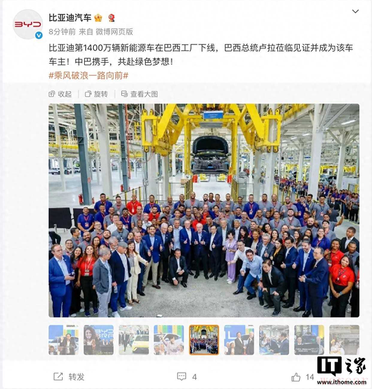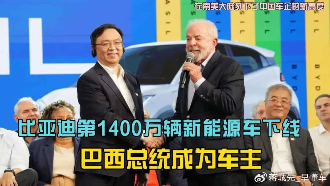 近期,比亚迪第1400万辆新能源汽车,在巴西乘用车工厂正式下线。