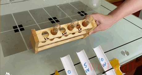 第二天我把装有机油的3支试管,同时倒在自制的滑道里。