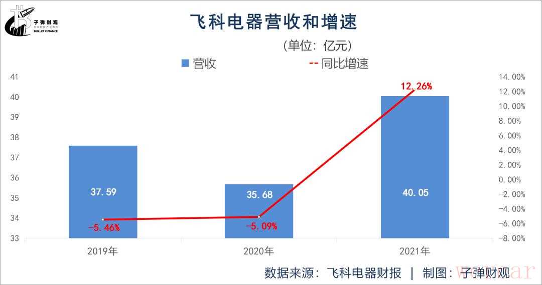 此外,飞科电器的部分财务指标正在向好,比如营收。飞科电器此前发布的财报显示,2019年和2020年该公司的营收增速均为负值,分别为-5.46%和-5.09%,到了2021年,这一数值被更新为12.26%。