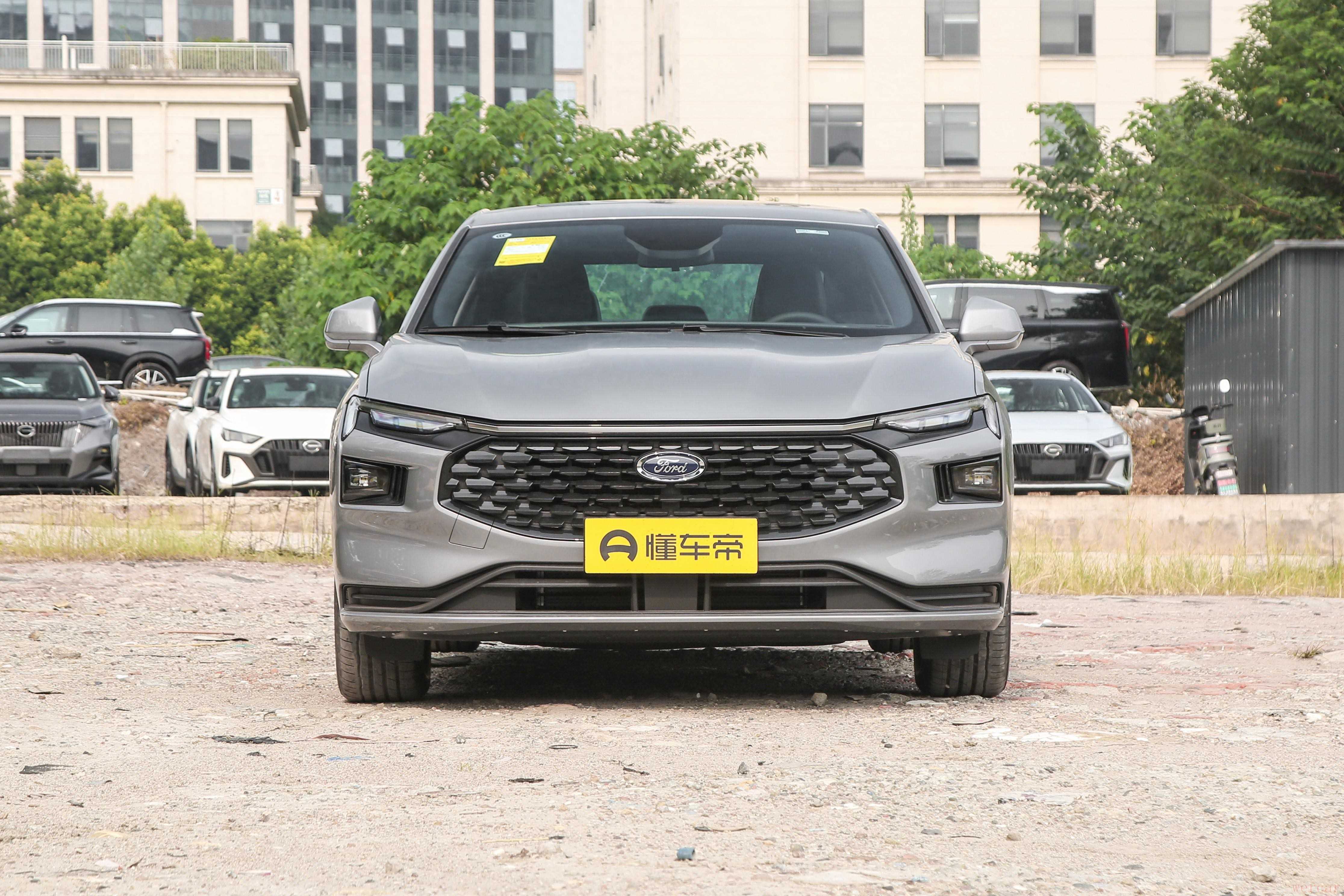 外观方面,蒙迪欧以“运动美学”为核心,前脸采用大尺寸六边形进气格栅,内部为参数化3D鳞甲纹理,经过熏黑处理,搭配可主动闭合的呼吸式设计。格栅两侧延伸至引擎盖的肌肉线条与分体式LED大灯组相连,营造出宽体低趴的视觉冲击。上方为贯穿式LED日间行车灯带,下方主灯组采用矩阵式布局,内置自适应远近光功能。灯带中央镶嵌福特LOGO,夜间点亮时辨识度极高,同时具备迎宾灯语动态效果。车身侧面线条流畅,隐藏式电动门把手不仅美观,还能降低风阻。车尾采用贯穿式尾灯设计,两侧尾灯竖条状模块化设计,夜晚点亮后,极具辨识度。下方采用隐藏式排气设计,让车尾看起来简洁大方。