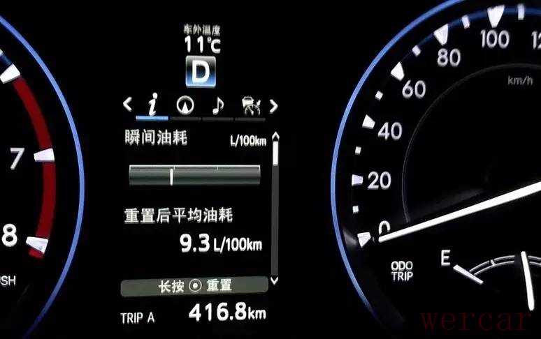 油耗就没得说了,太省油了,市区拥堵路段也就10个油左右,只要上了快速路,油耗马上就下来了,通过软件计算,现在的油耗百公里平均8.44升。