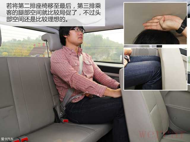 第三排的空间虽然不如前两排,但是体验者也能勉强坐下,第三排乘坐只适合短途的旅行或应急下的需求。