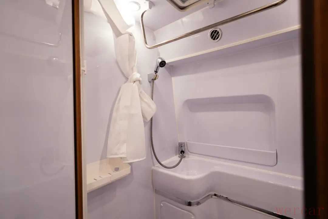 后方休息区域采用的横置上下铺设计,可以满足多人的睡眠需求。上铺可翻折,不使用时可以收上去。上下床铺均设置有储物袋,可放置小件物品。四周是带有隐私玻璃和隐私帘的车窗,保证这个区域通透性的同时也能很好的保证这个区域的隐私性。水电配置方面,这款车标配有150L清水箱、70L灰水箱,水箱均采用PE食品级,安全方面很有保障;48V/150Ah锂电、48V智能双发电机、3000W逆变器、智能市电口(带新能源电桩充电功能),也可根据需求选装250W太阳能电池板。除此之外,还配备有行车空调((10kW压缩机,远程控制)、48V直流变频空调、以及驻车加热系统。车友们觉得这款车怎么样呢?欢迎在下方评论区留言!