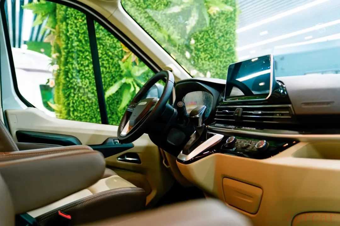 这款车基于V100原厂房车专用底盘打造,驾驶感更舒适。搭载上汽π2.0T柴油发动机,匹配6AT自动挡变速箱,额定功率110kW,最大扭矩375N.m,符合国六排放标准,蓝牌C照即可驾驶。