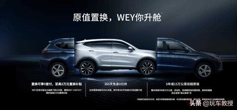 不仅如此,在金融政策的支持以及售后服务方面也做到了豪华品牌该有的水准。WEY品牌推出“原值置换 WEY你升舱”用户关爱举措,不仅献上至高100%原值置换、限时高至2万元置换补贴、免费6次基础保养服务为旧爱保“价”,同时提供了36期0息、365天免息0日供、60期超长低息等多种零压力换购方案实力宠粉,为新老用户开启全新用车生活的同时,借助差异化用户思维,构建服务优势,引领中国汽车品牌全面进阶。