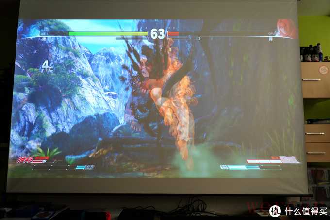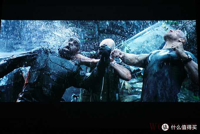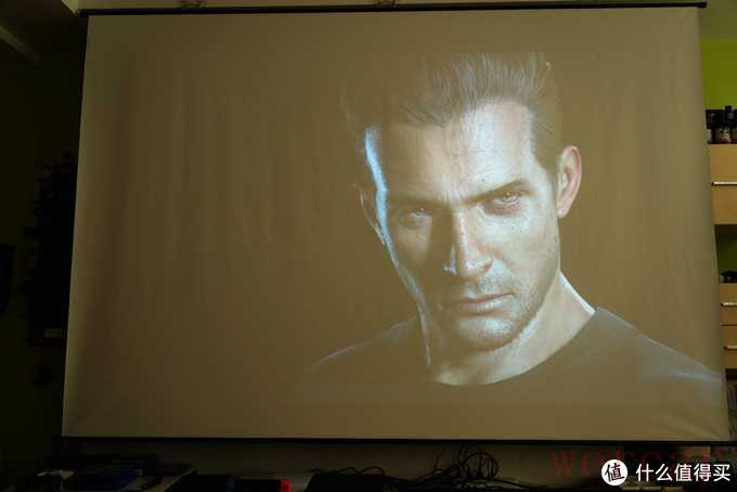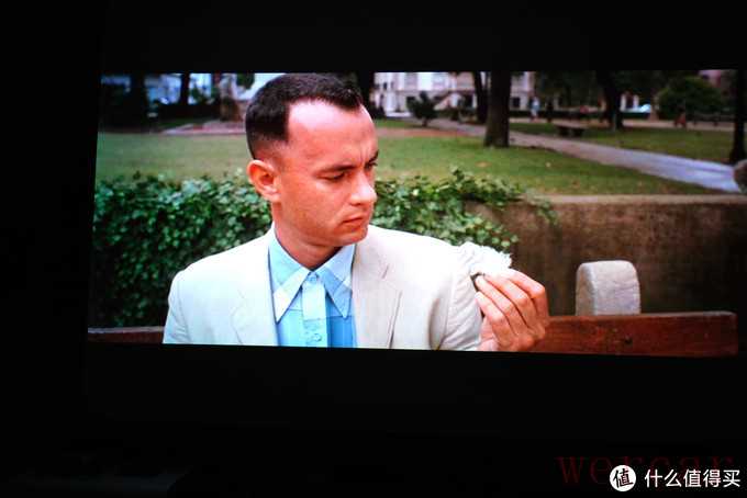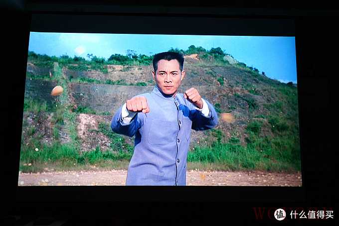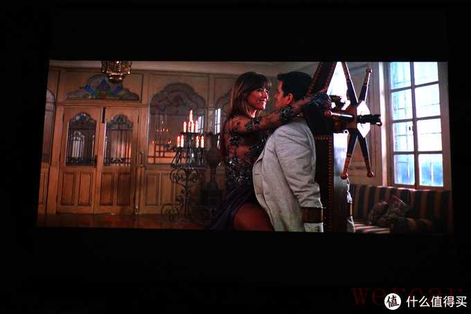虽然我这幕布挂的靠前了一段,沙发又因为后面并不是靠墙又往前移了一段,按道理说,120寸肯定是太大了,但是,我个人却没有感觉什么不适应的,这个可能因人而异。