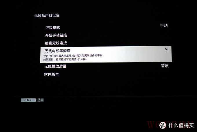 听到这个消息的时候还是很开心的,原来以为回音壁就是会经常连不上的坏想法也没有了,SONY客服帮不上的尴尬也一扫而光,直接进入设置菜单找到无线电频率频道,把抗干扰的按键“关”,之后神奇的事情发生了,Z9R就再也没有断链过........