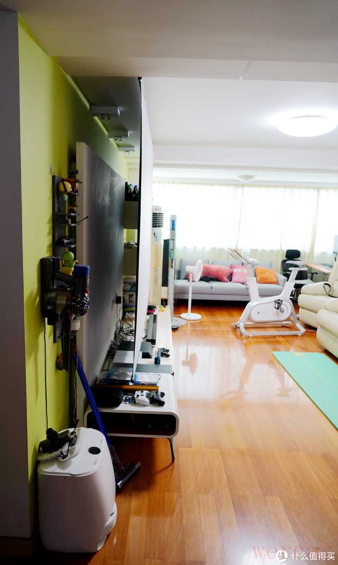 买这个机器的理由也比较简单,大的电视机不是五位数以上售价基本不用看了,家里的客厅直线观看距离3.8米,投白墙的话堪堪能到120寸,本来客厅看电视电影的机会就比卧室少,借此机会了解一下现如今的投影机发展到什么质素了难道不香么?其实我并不知道,对原来只想先体验一下大屏幕的我来说,事情正在渐渐的开始发生着变化。我自己其实也没想到后来的客厅会变成这个样子: