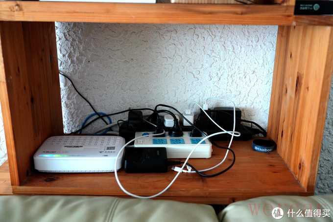其实,说到底还是电源的问题,路由器,光猫,后来买的Z9R音箱的两个插头,投影机,都需要插座,有了插座又没地方放,像@贫民种草指北那样买线槽走线又太折腾,所以最终就成了现在这样的方案。(请忽略已经尽量整理了然而还是看着乱七八糟的线 )。