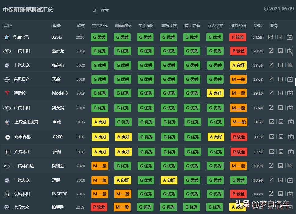 本文小结:整体来看,中型车的安全性表现都很出色,宝马3系登顶,日产天籁前五,本田雅阁虽然也是榜上有名,但它的表现有点低于预期。对于安全性最好的十大中型车,大家怎么说呢?