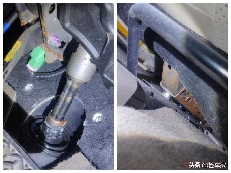 驾驶员气囊和膝部气囊都没拆卸破损痕迹,可以进一步排除车辆有过重大事故的嫌疑,接下来我们再看一下这辆车的底盘。