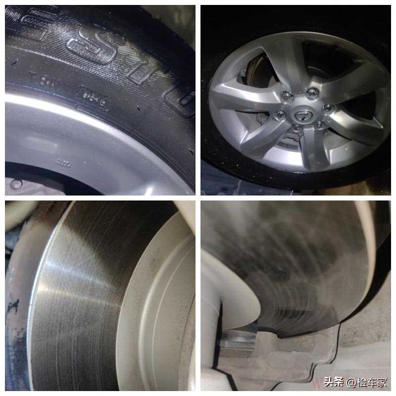 最后检查轮胎轮毂和刹车,可以看到轮胎都是换的19年出厂的,目前可以继续使用,轮毂有过喷漆,应该是剐蹭导致,刹车片和刹车盘都没有问题可以继续使用,不过毕竟开了11万公里了,建议还是可以换一套刹车片。