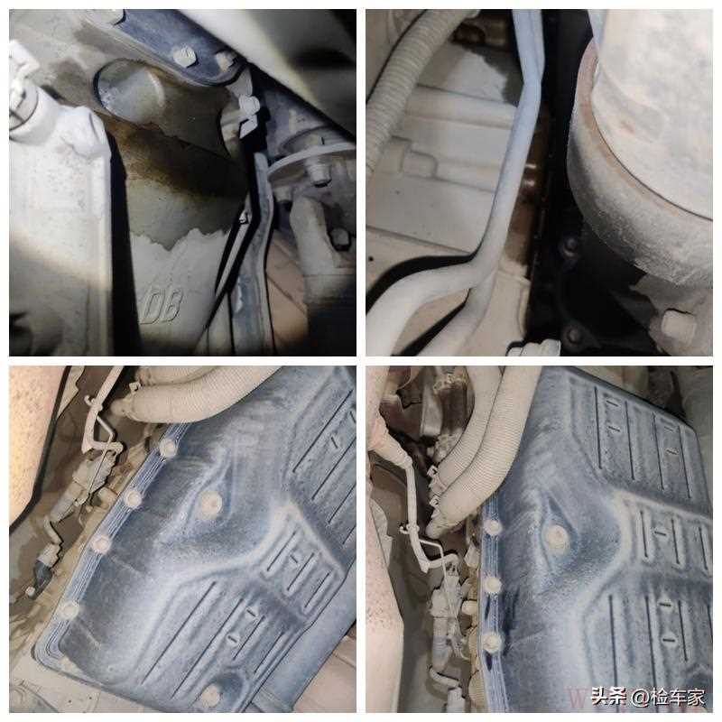 接着检查到发动机变速箱结合处螺丝有渗油,发动机油底壳轻微渗漏,变速箱倒是没有问题。