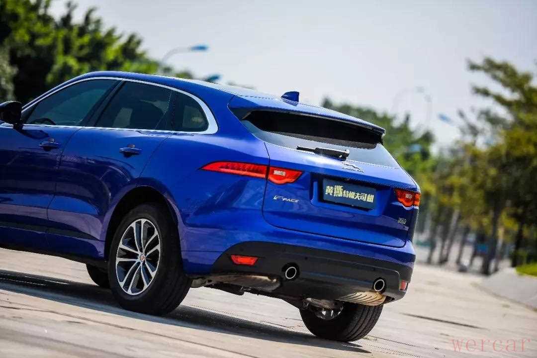 我身边这台水晶蓝色的捷豹F-PACE 2.0T R-SPORT就正好有300马力。