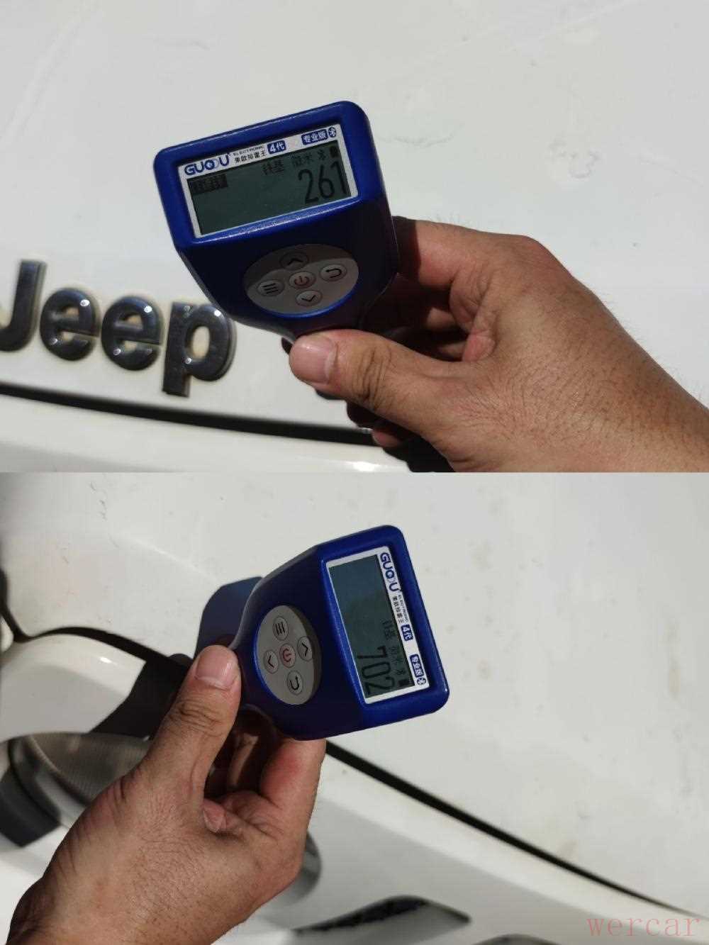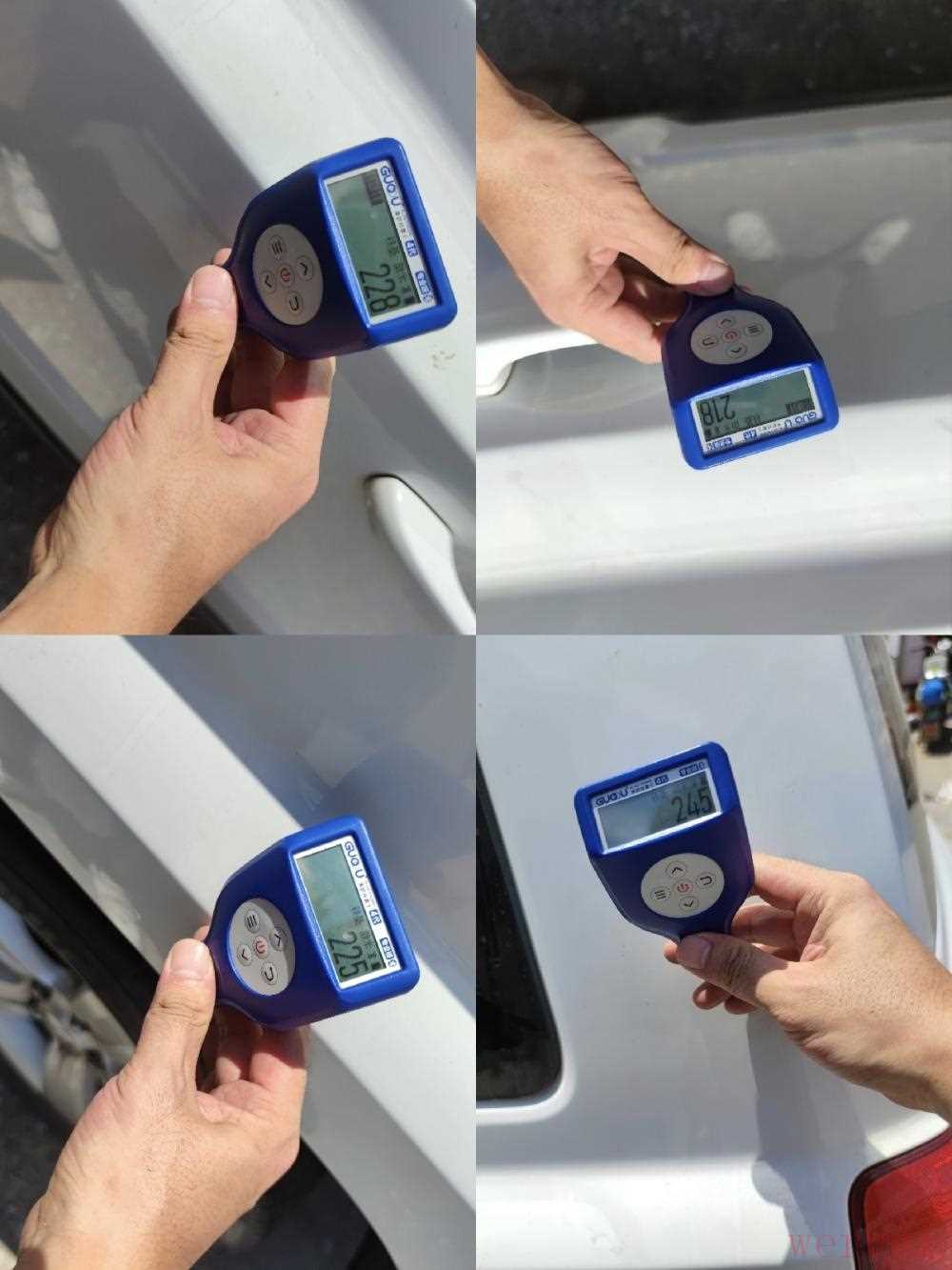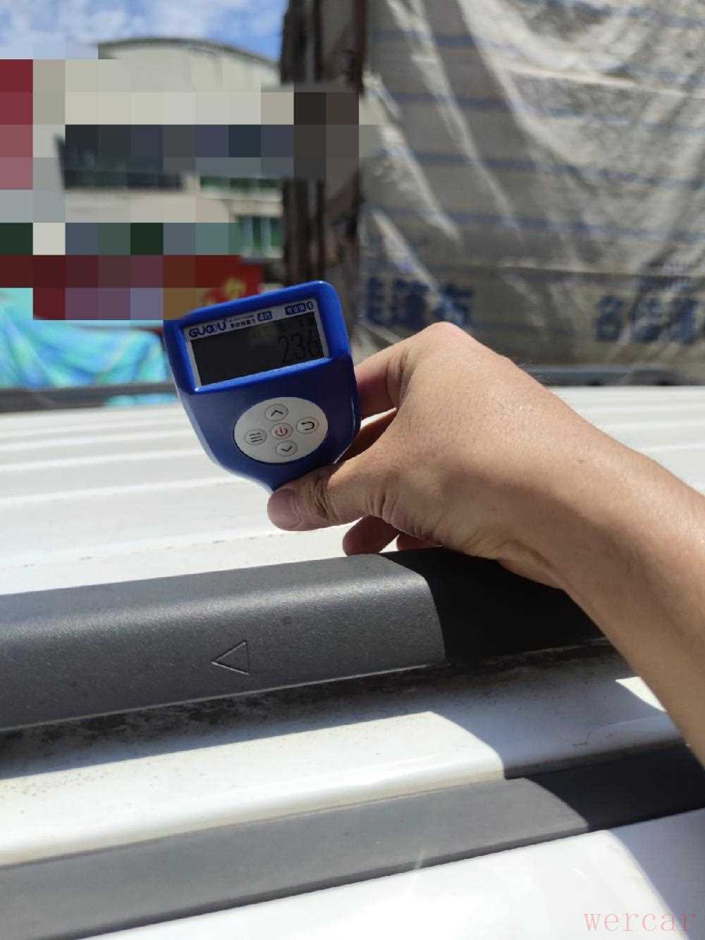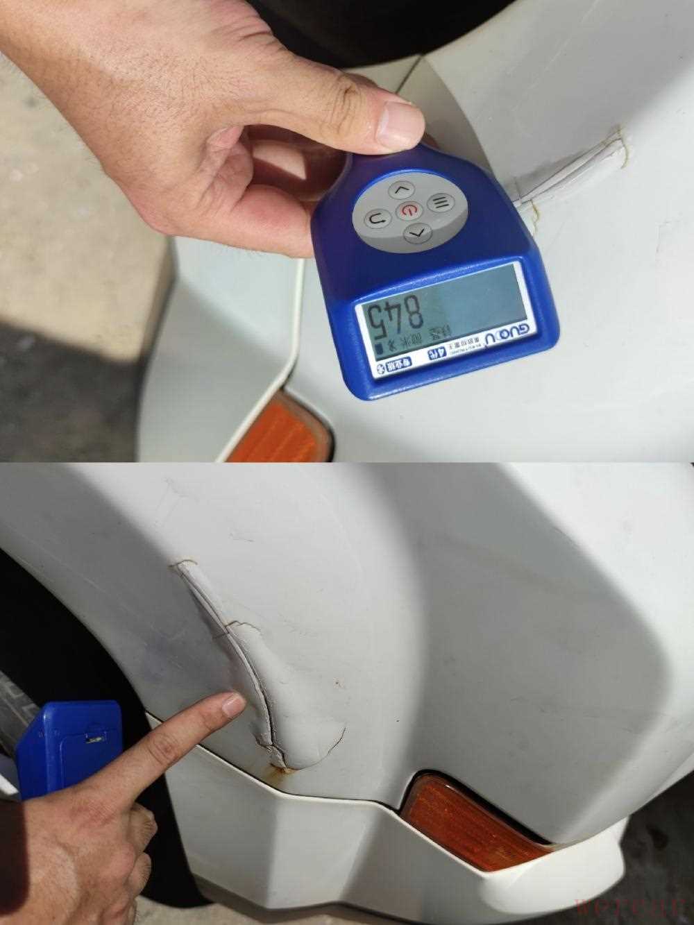 继续检测后面车身,惊奇的发现都是原版原漆,除了右前方的碰撞,车身其它地方都保存完好,非常难得呀!当然,小划痕小刮擦少不了,这么多年的车,完全不用介意。