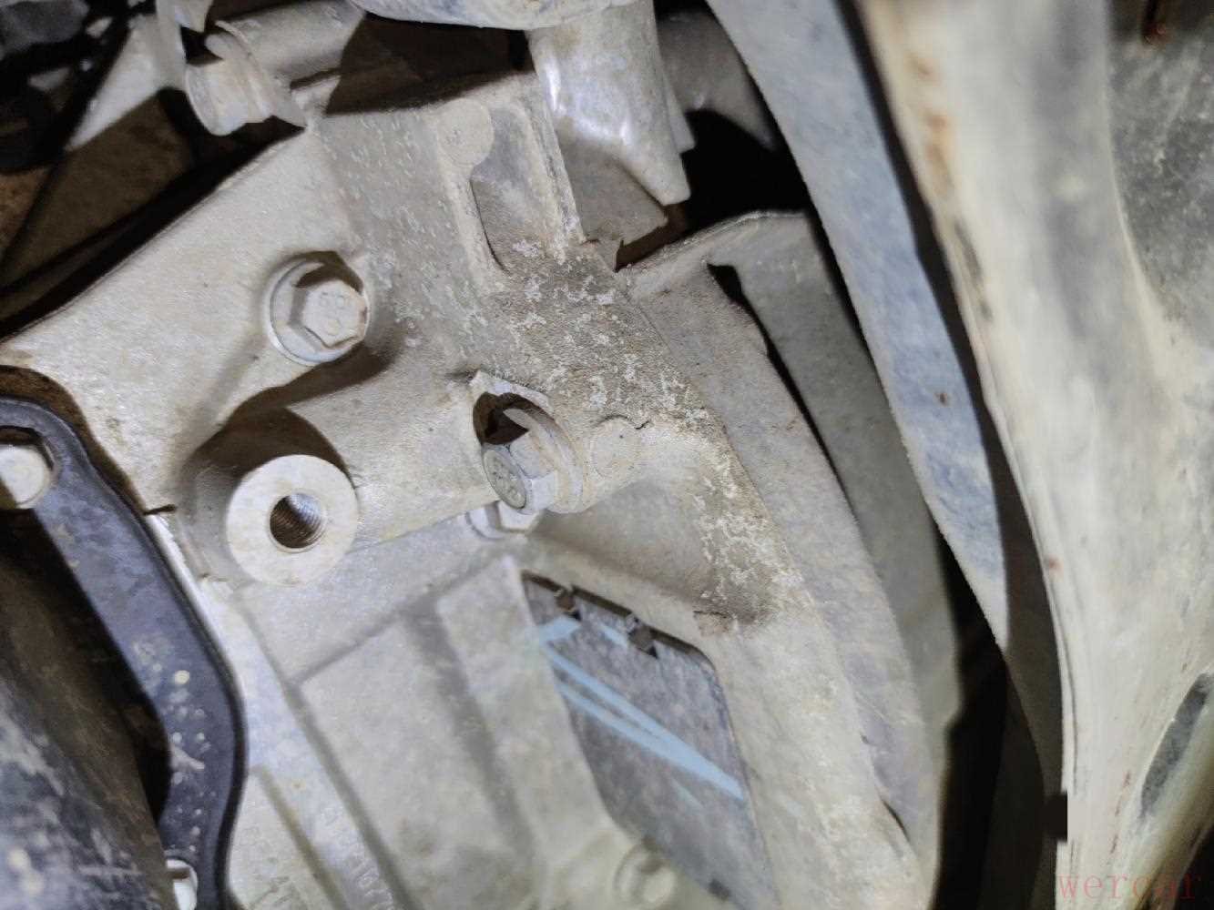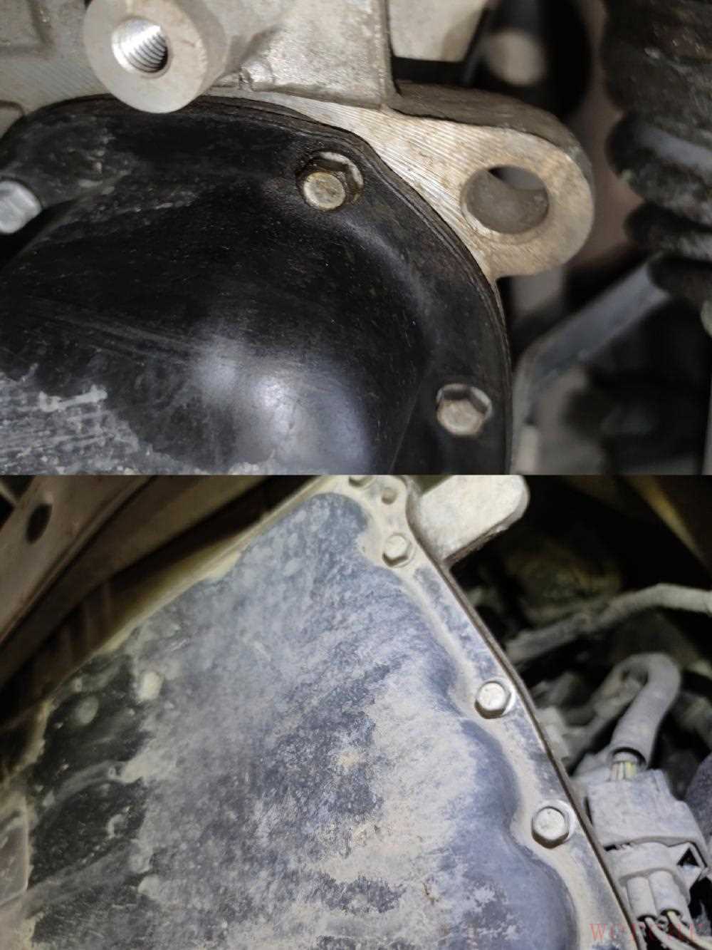 发动机和变速箱结合处一圈螺丝都没有拆卸,也没有渗漏,这样就可以排除发动机和变速箱分解维修的情况了。