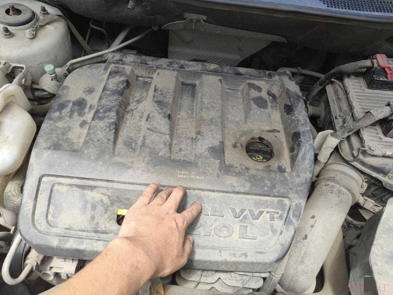 看一下发动机舱,厚厚的一层灰啊,车主说买了别的新车,这个车就一直放在地库里面了,很久没开过,也没来得及洗车。这个问题不大,这才是正常家用车的状态,也有利于我们检测。