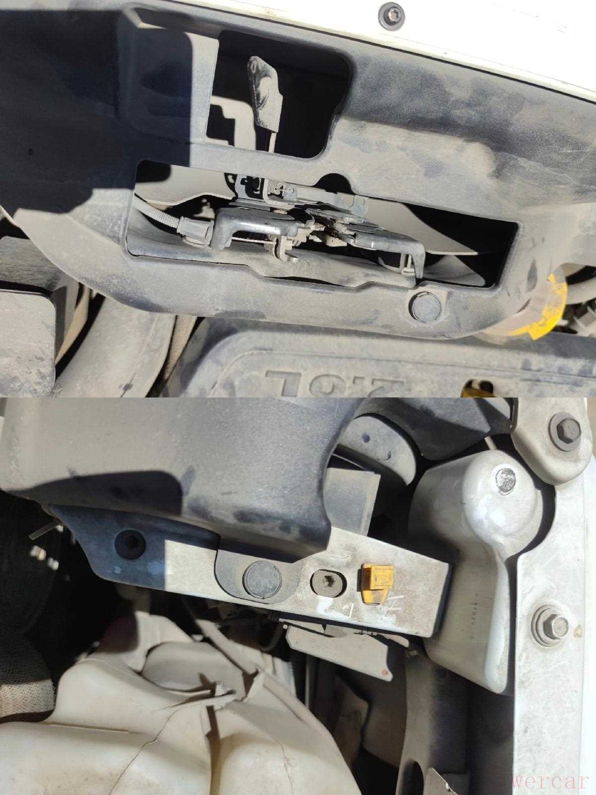 前纵梁和前防撞横梁的连接螺丝没拆,上面看也没有变形的情况,更加证明了事故不大。