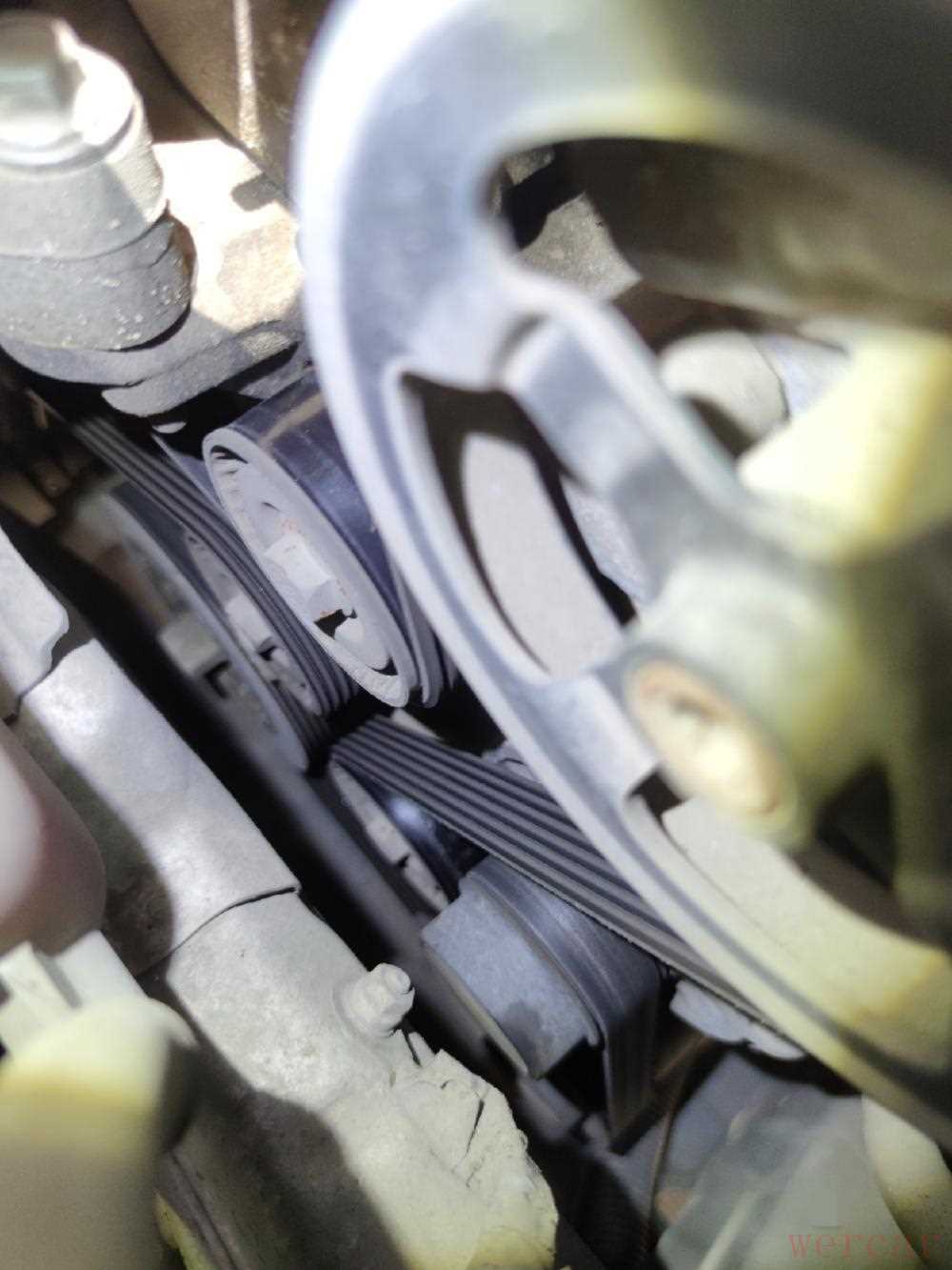 正时盖一圈的固定螺丝也没有动过,发电机皮带等易损件也没有老化开裂,不错不错,机舱上面看完,我对这辆车挺乐观的。