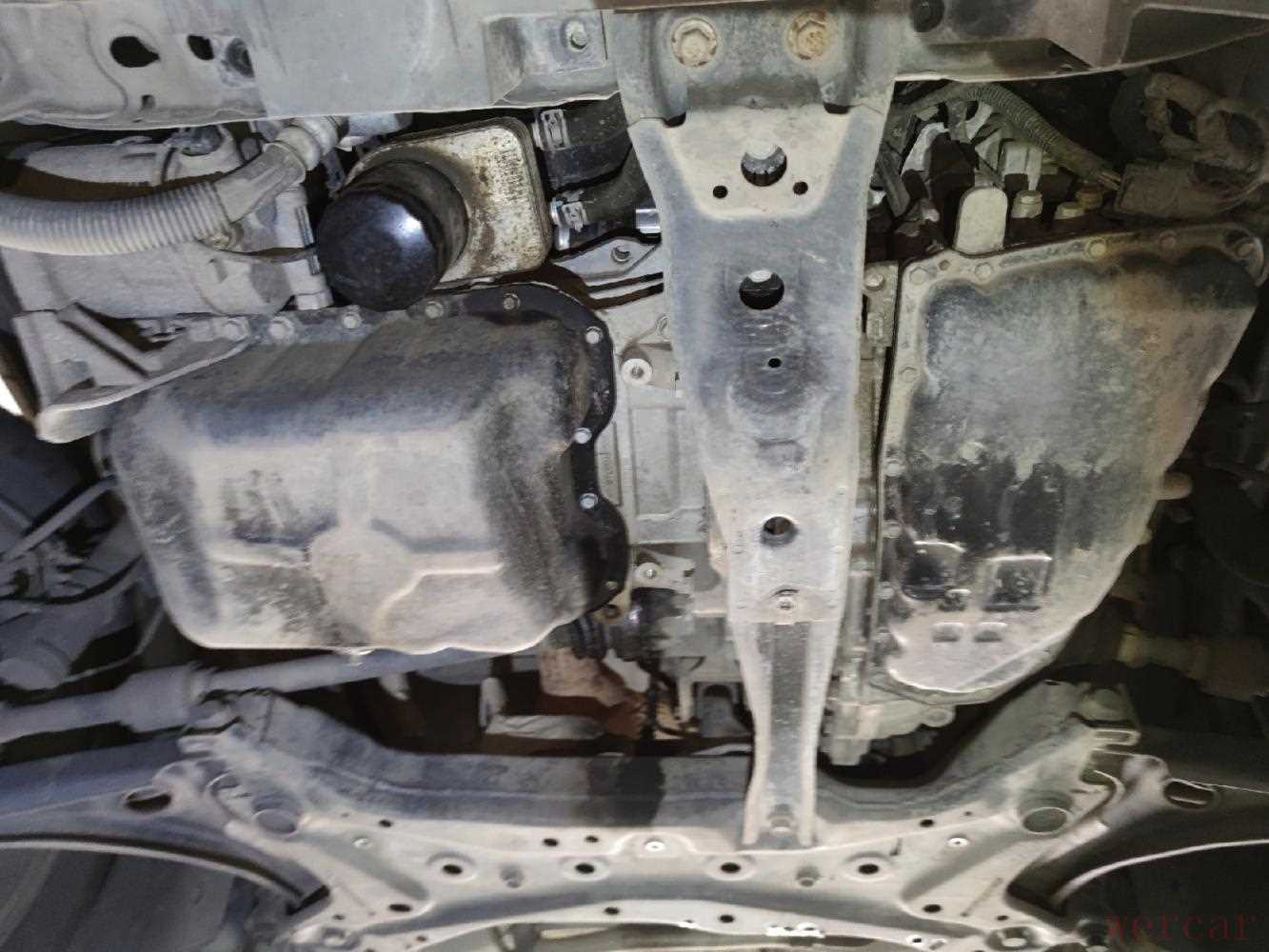 随后上架检测底盘,护板拆掉之后能看到下面还是挺干净的,没有渗油漏油,也没有明显的刮蹭托底,毕竟车身底盘高。