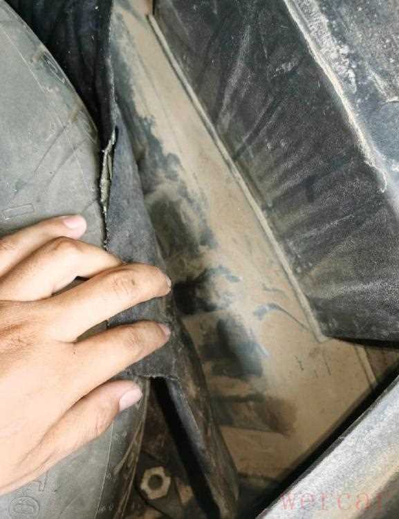 左前底边梁有明显的磨损痕迹,很明显这是长时间使用来回上下车磨损导致的,这才十多万公里的车,按照道理来说磨损还不至于这么大。暂时先不管,咱们一会读下它的公里数再看。
