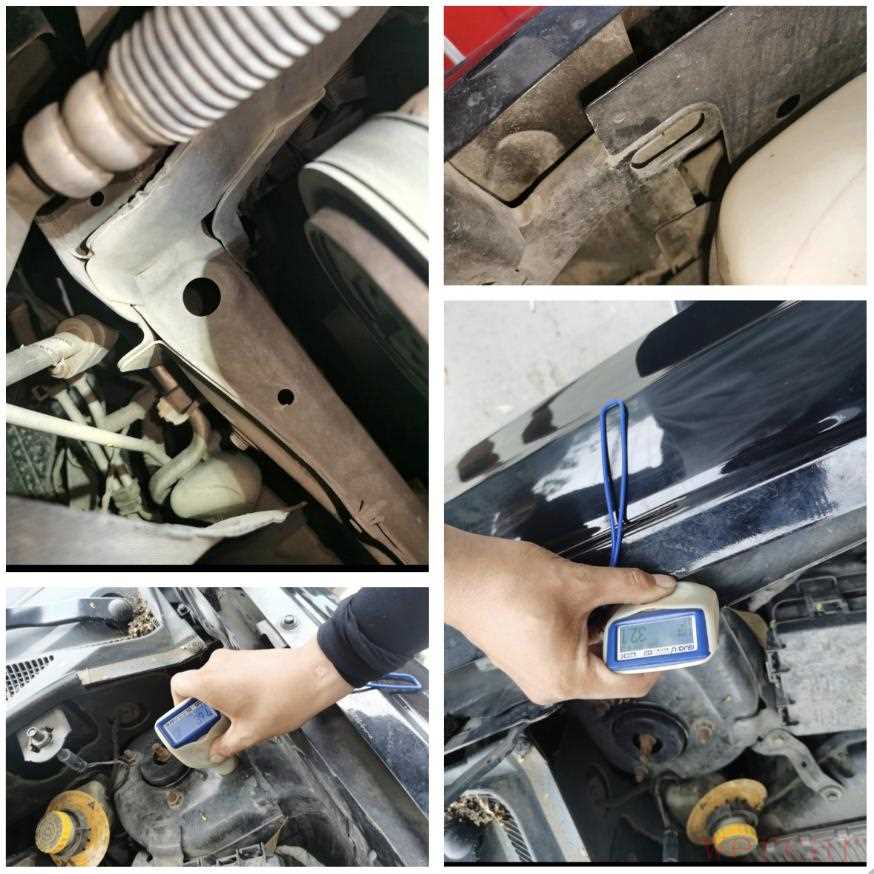 首先咱们还是先从车头看是检测,车辆前方水箱框架正常,固定焊点没有修复;左前纵梁和右前纵梁数值正常,纵梁本体表面平整光滑无变形,并且没有发现切割焊接痕迹;左右两侧前叶子板骨架也都没有变形和修复。