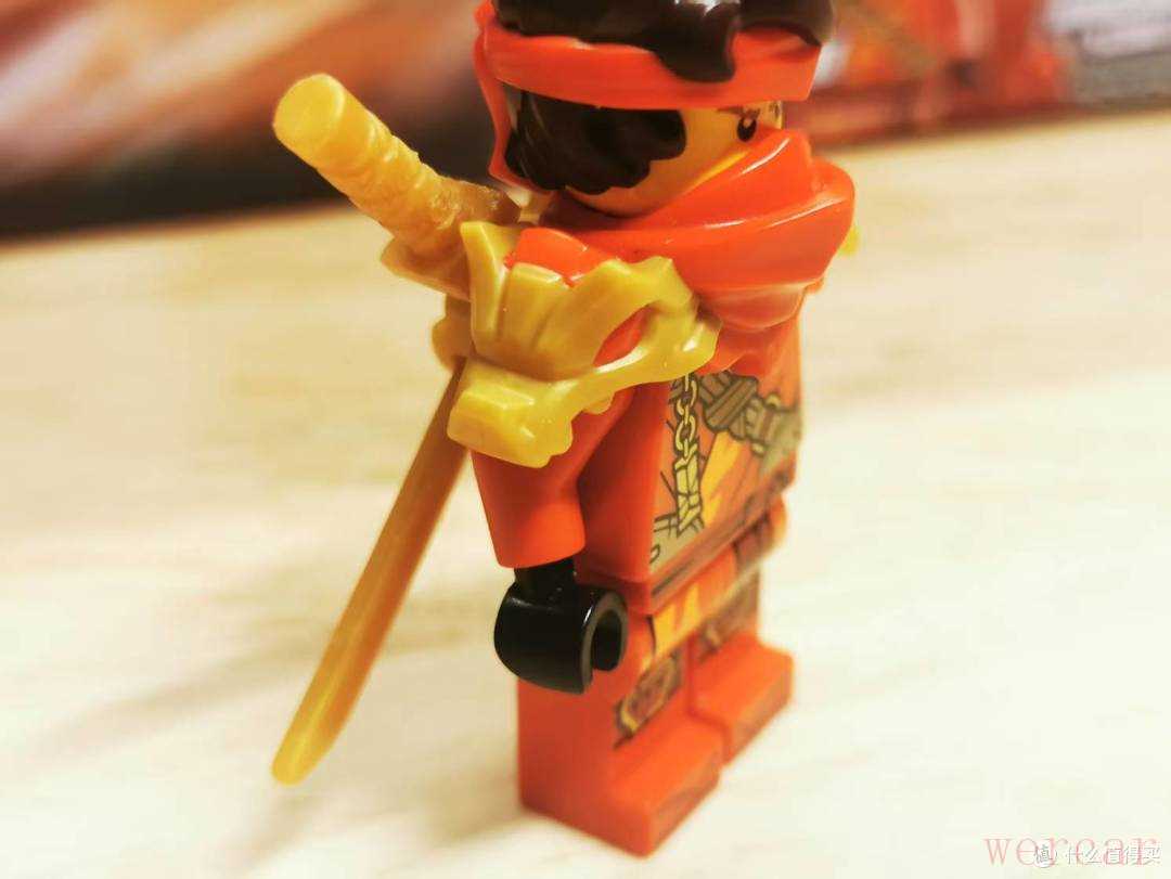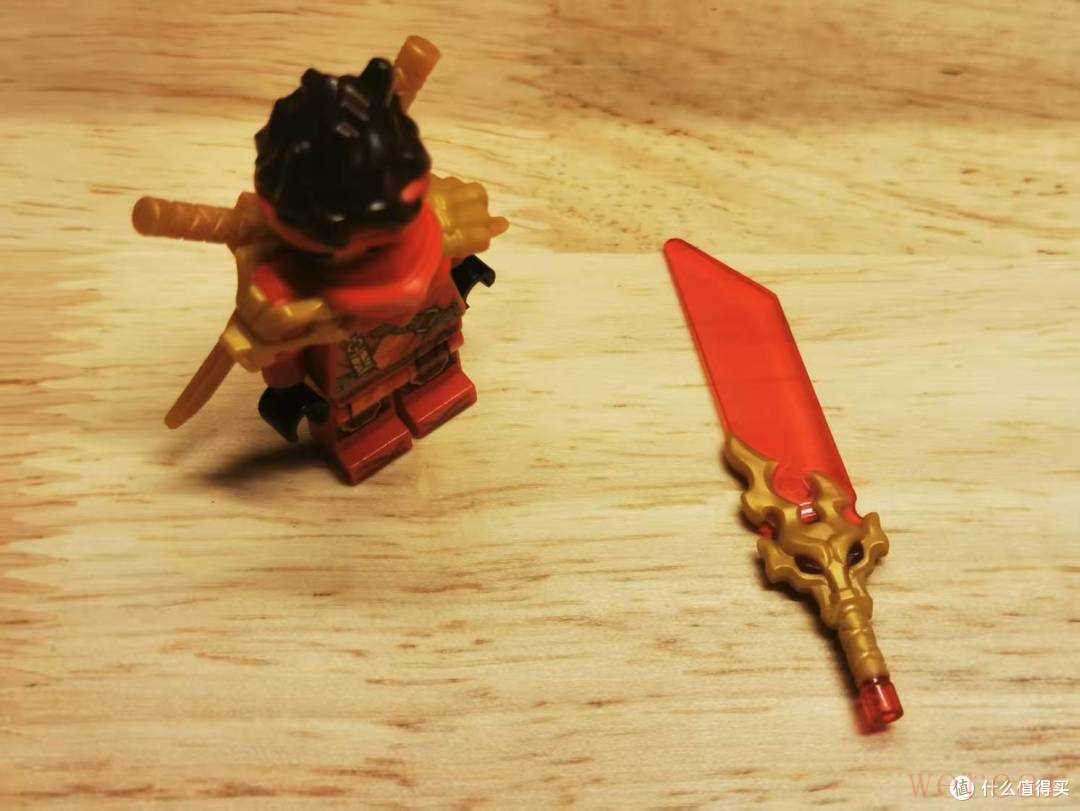 值得一提的是凯手里的武器,这把武器是新开模制作的武器,看上去十分精细,刀柄部分是金黄色的火龙,顶部的红色刀刃还是半透明的材质,和火元素的忍者凯十分般配。