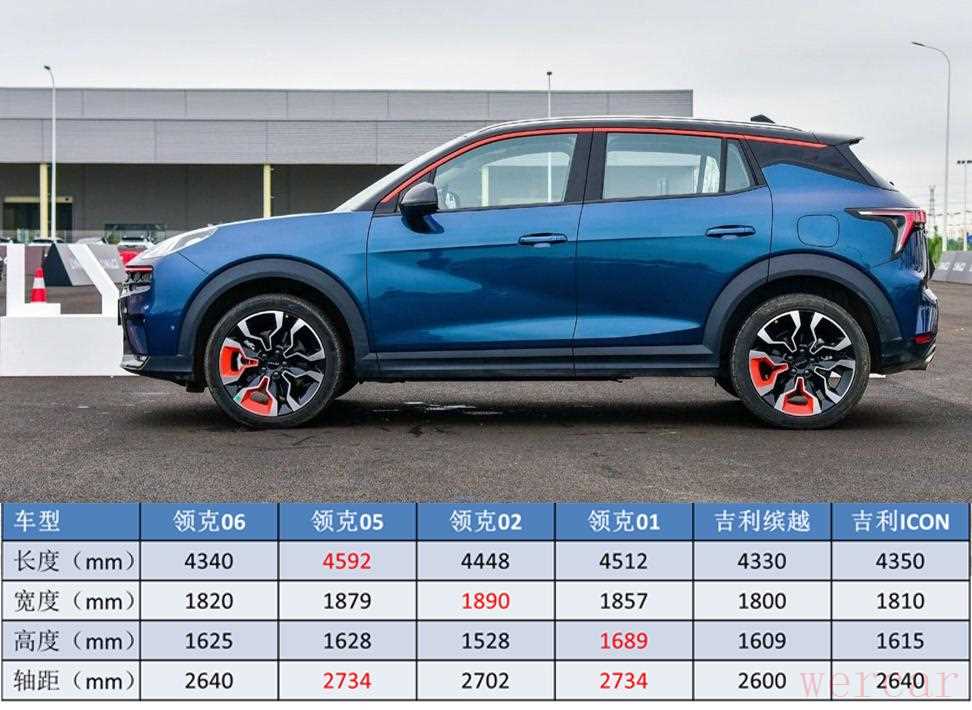 虽然领克06的数字是目前家族最大的,但其车身尺寸却是最小的,它的长宽高分别为4340/1820/1625mm,轴距为2640mm,和吉利的缤越、icon接近,是标准的小型SUV身材。