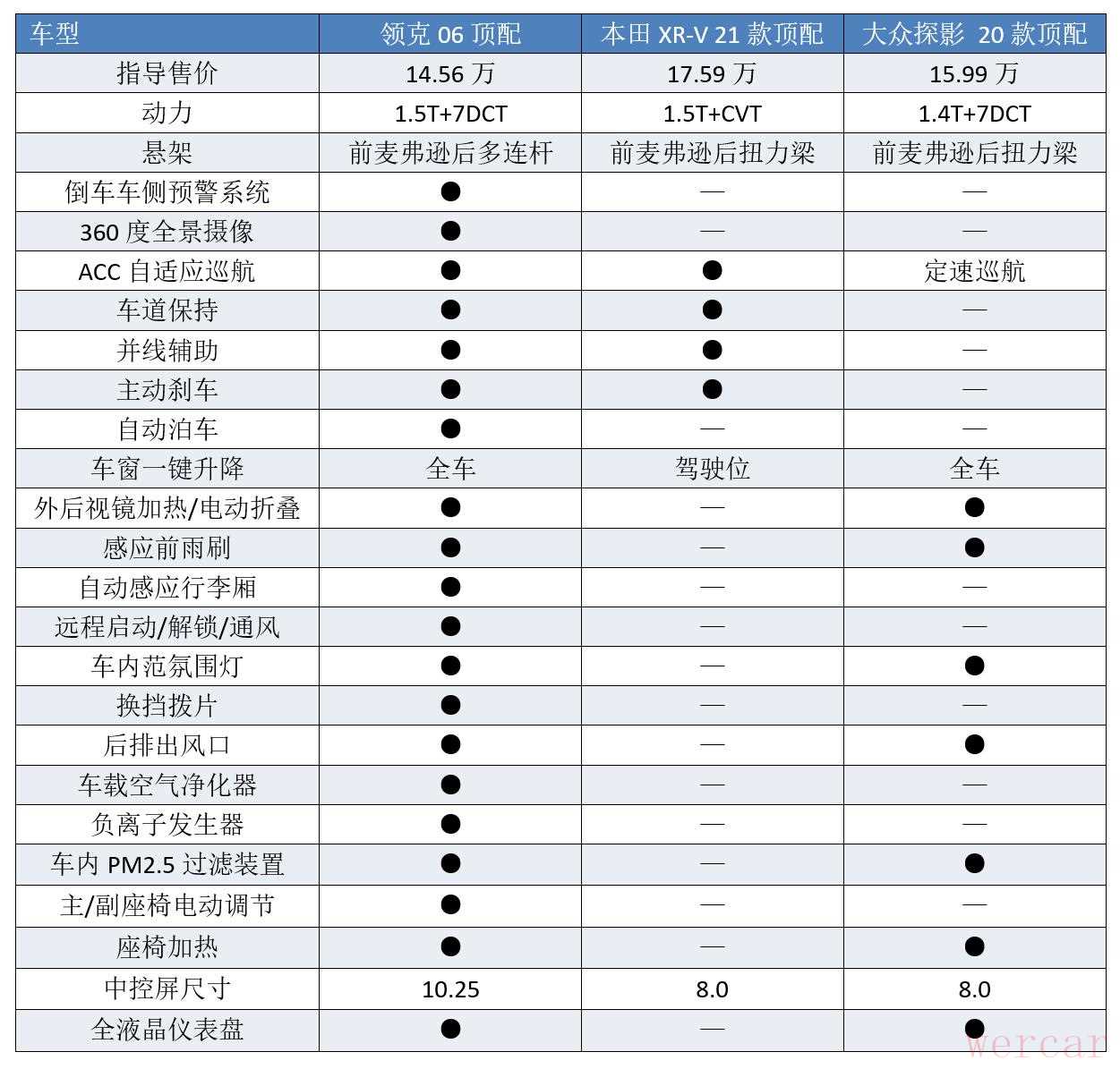 虽说领克06的价格咋一看确实是有点贵,但当消费者去查看配置的时候,就会发现,这样的定价并没啥毛病。特别是和相比于本田XR-V和大众探影,领克06无论是从智能化,还是性价比来说,都要更领先。