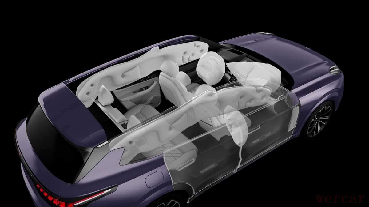 安全性能上,基于SPA架构的笼式车身热成型钢占比超35%,副驾配备狐首型安全气囊,2550mm侧气帘覆盖A柱至D柱,二排座椅背部采用防穿刺高强度钢板;同时采用“0杂棉、0沥青、0有害溶剂”的健康座舱,减少车内异味与有害物质。全系标配的全场景翻滚保护系统,可在50ms内点爆侧气帘,200ms内完成油路断开、车门解锁,同级独有的主被动融合钻卡科技则进一步强化了碰撞防护能力。