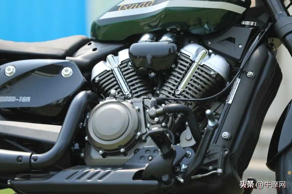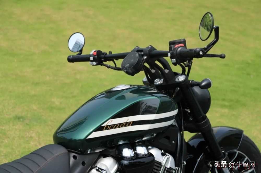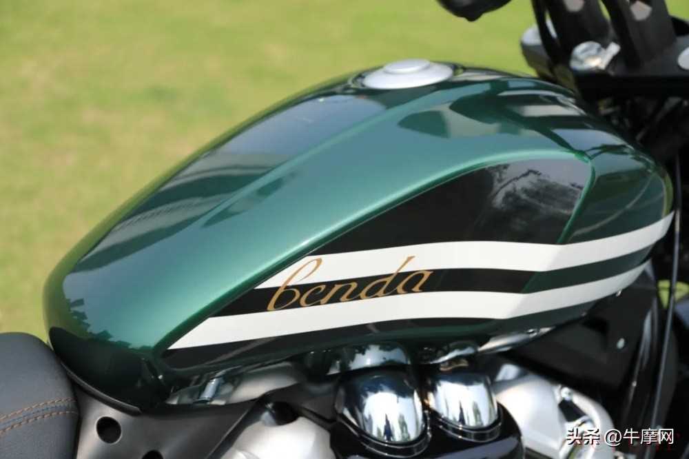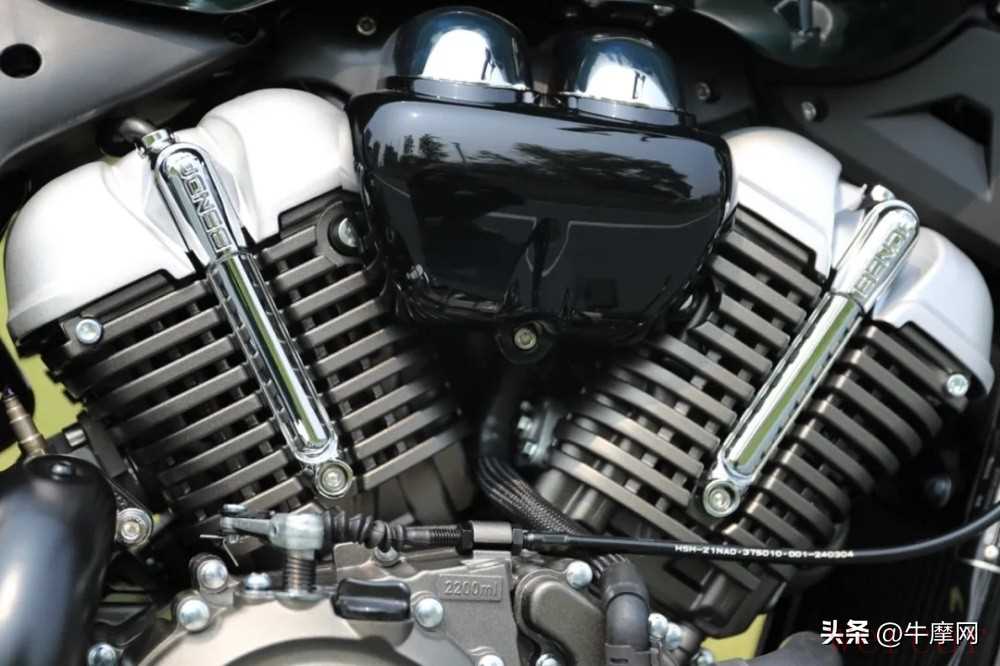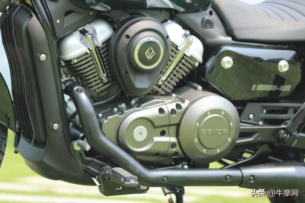 然后是外观,全新的缸头造型,尤其是“顶杆”造型的装饰件,应该会让多复古车爱好者为之一振,看得出奔达对巡航车有很深的研究,没记错的话,此前国产品牌里面还没有这样的设计,整个发动机看起来非常有力量感,视觉效果拉满。