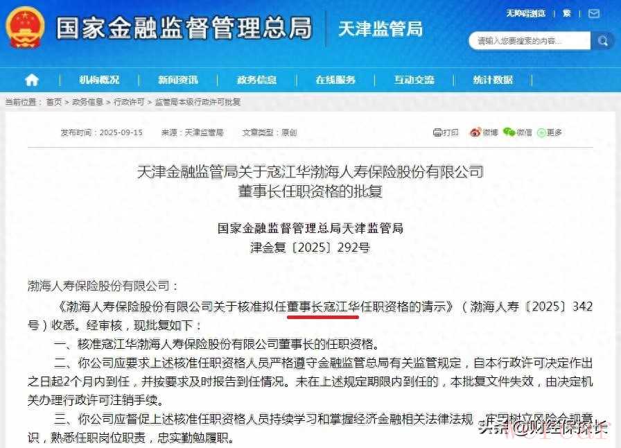你发现没有?这个履历简直是为渤海人寿量身定制的。