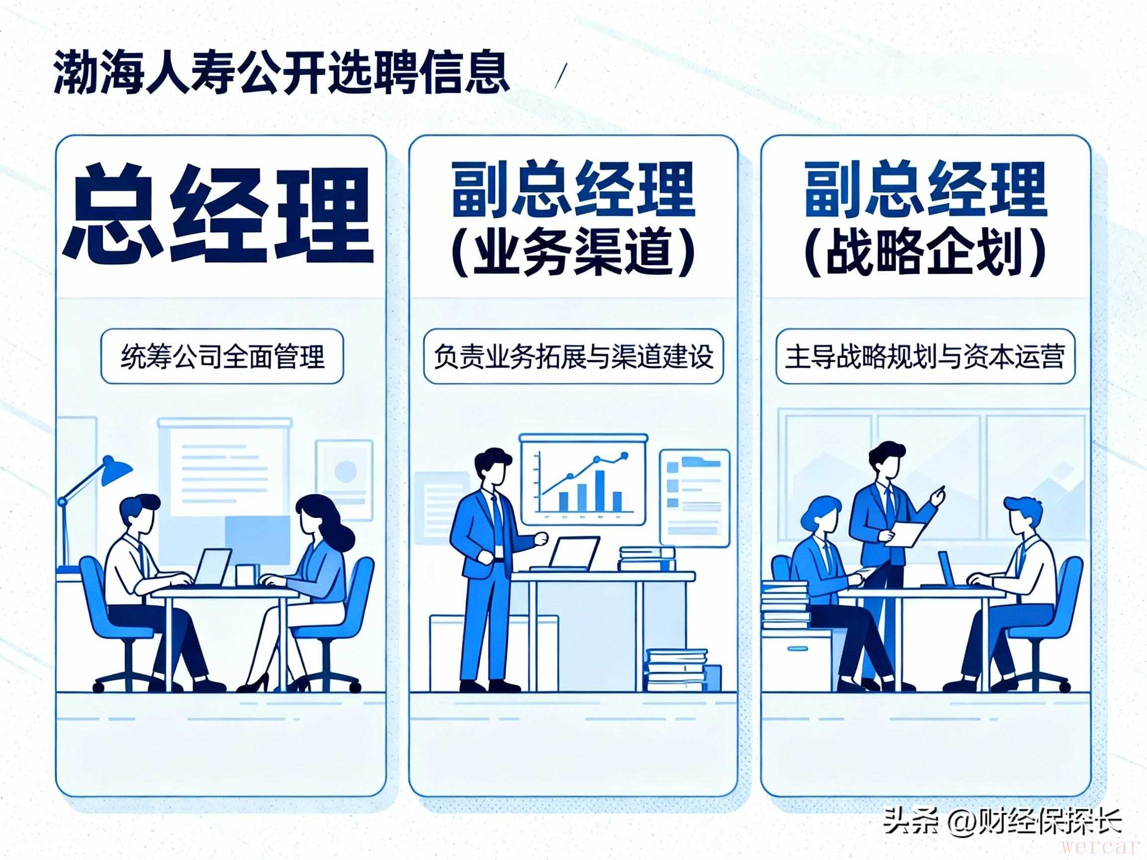 尤其是人才这块,渤海人寿最近公开选聘总经理和两位副总经理,分别负责业务渠道、战略企划和资本运营。这个动作其实透露出一个信号:公司要彻底市场化了。