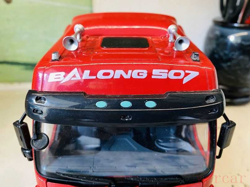 侧导流罩的宽度较窄,在当时国内的运输市场,导流罩的作用仍未被凸显出来,因此模型上参照实车的实际状况,并没有使用较宽的侧导流罩。今时不同往日,如今的507车型后代、柳汽乘龙H7卡车,早已经考虑到侧导流罩对风阻的影响,甚至可以选配几乎能覆盖驾驶室与挂车之间空隙的大型导流罩。