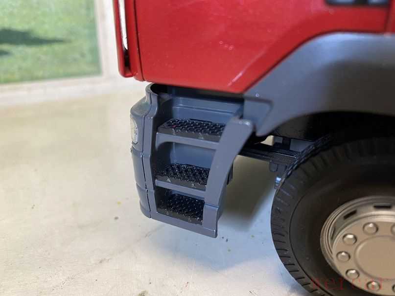 登车踏板使用了3层的设计,当年的卡车设计并没有如今那么讲究风阻的问题,所以并没有对登车踏板进行适当的覆盖设计。登车踏板上的防滑结构还原较为清晰,肉眼即可观察得到。