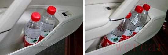 来到车门处我们发现车门板上的储物空间跟整个帕萨特的乘坐空间有着同样的基调,那就是大。前车门版竖直方向两个饮料瓶不成问题,后门板更是可以竖直放下三个饮料瓶,门板储物槽后部还可以放置手机或者钱包等物品,完全可以满足日常使用。