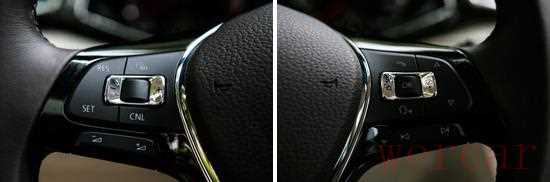 新帕萨特上的平底三幅多功能方向盘在之前很多大众车型上都已采用,细腻的真皮与精致的缝线配合的恰到好处,钢琴漆饰板的加入使得其看起来增添了几分运动感。多功能方向盘按键丰富,左边为定速巡航以及音量调节,右边为行车电脑调节,蓝牙电话以及多媒体控制。