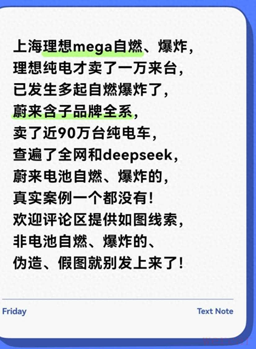 关于您提到的“蔚来 90 万辆 0 自燃是真的”以及“理想 MEGA 出事,电动车安全别只看宣传”这两个观点,我们可以从几个方面来分析: