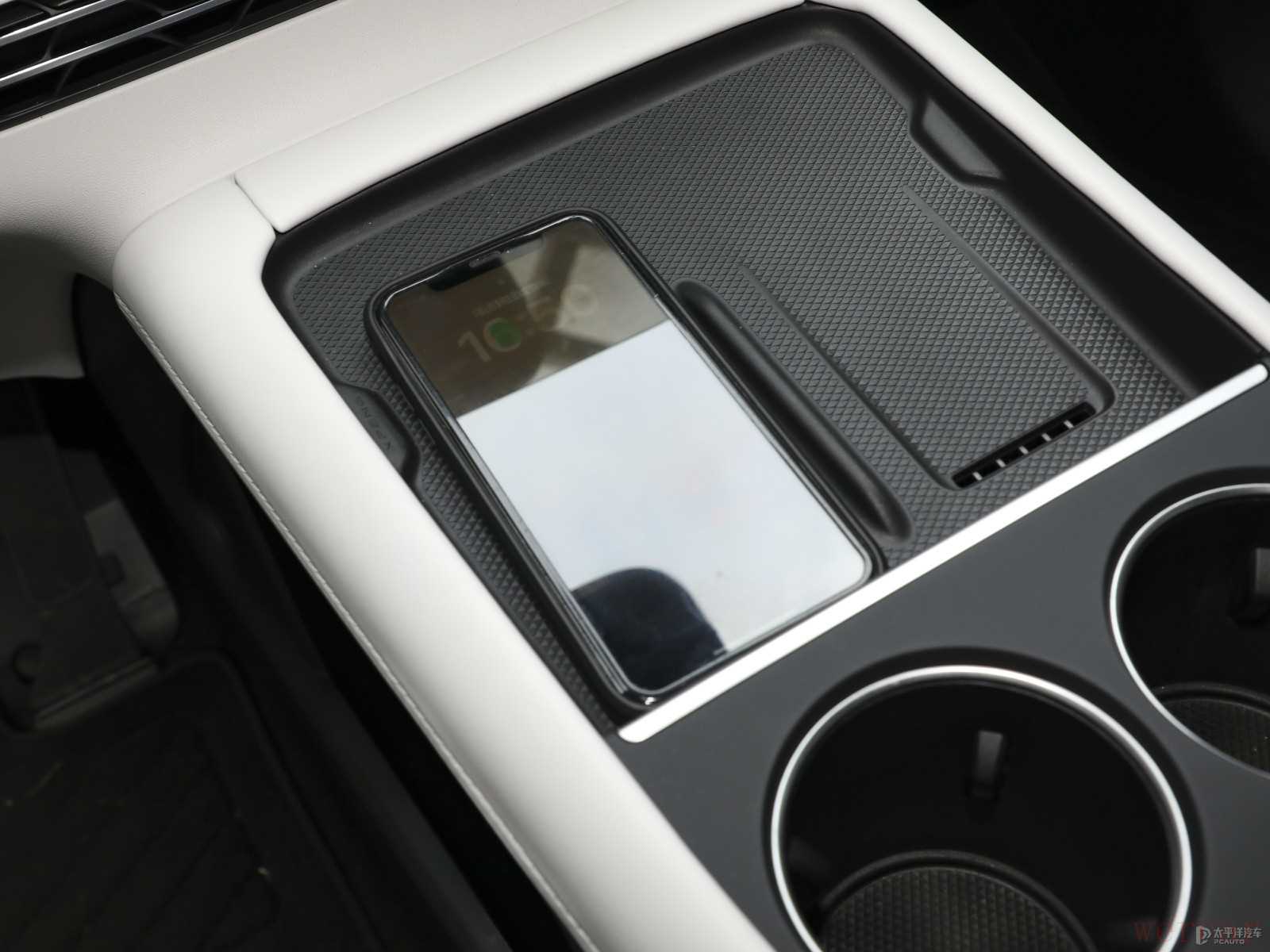 前排双50W无线充电,更高充电功率,带通风功能,前排乘客使用的时候就无须再理会先后顺序。