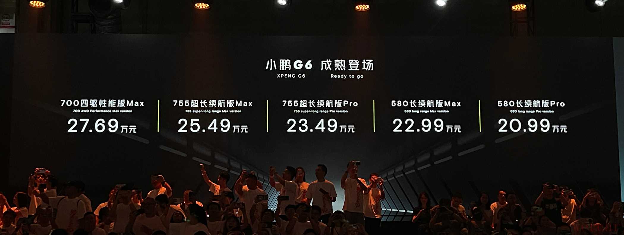 【太平洋汽车 导购频道】早在今年上海车展前夕,小鹏汽车就发布了SEPA2.0「扶摇」全域智能进化架构,作为该战略的首款车型,小鹏G6(询底价|查参配)自伪装车上路以来就备受关注。6月29日晚,新车终于正式上市,官方指导价为20.99-27.69万元。小鹏G6搭载了XNGP智能辅助驾驶系统、X-EEA新一代电子电气架构、Xmart OS 4.0智能车载系统、X Combo私人订制、800V高压SiC碳化硅平台、前后一体式铝压铸车身、CIB电池车身一体化技术等多项小鹏先端科技。全国各大门店展车、试驾车已经到店,新车将于7月开启交付。