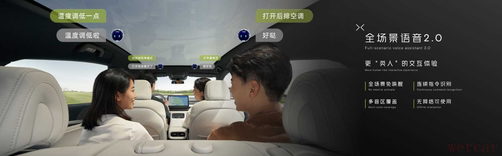 (液晶仪表盘为10.2英寸、悬浮式中控屏为14.96英寸,内嵌全场景语音2.0,能协助完成车辆座舱内绝大部分的功能操作和设置,响应速度达到毫秒级,还能做到四音区识别和无网络对话。)